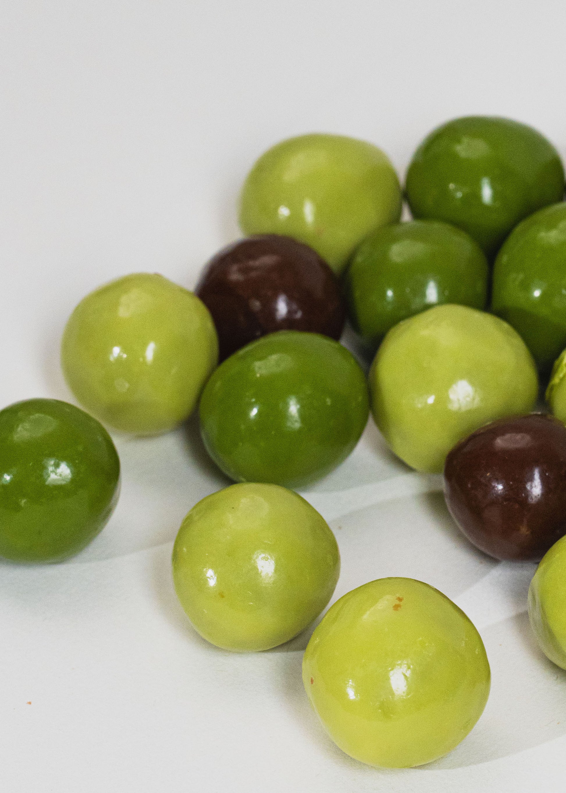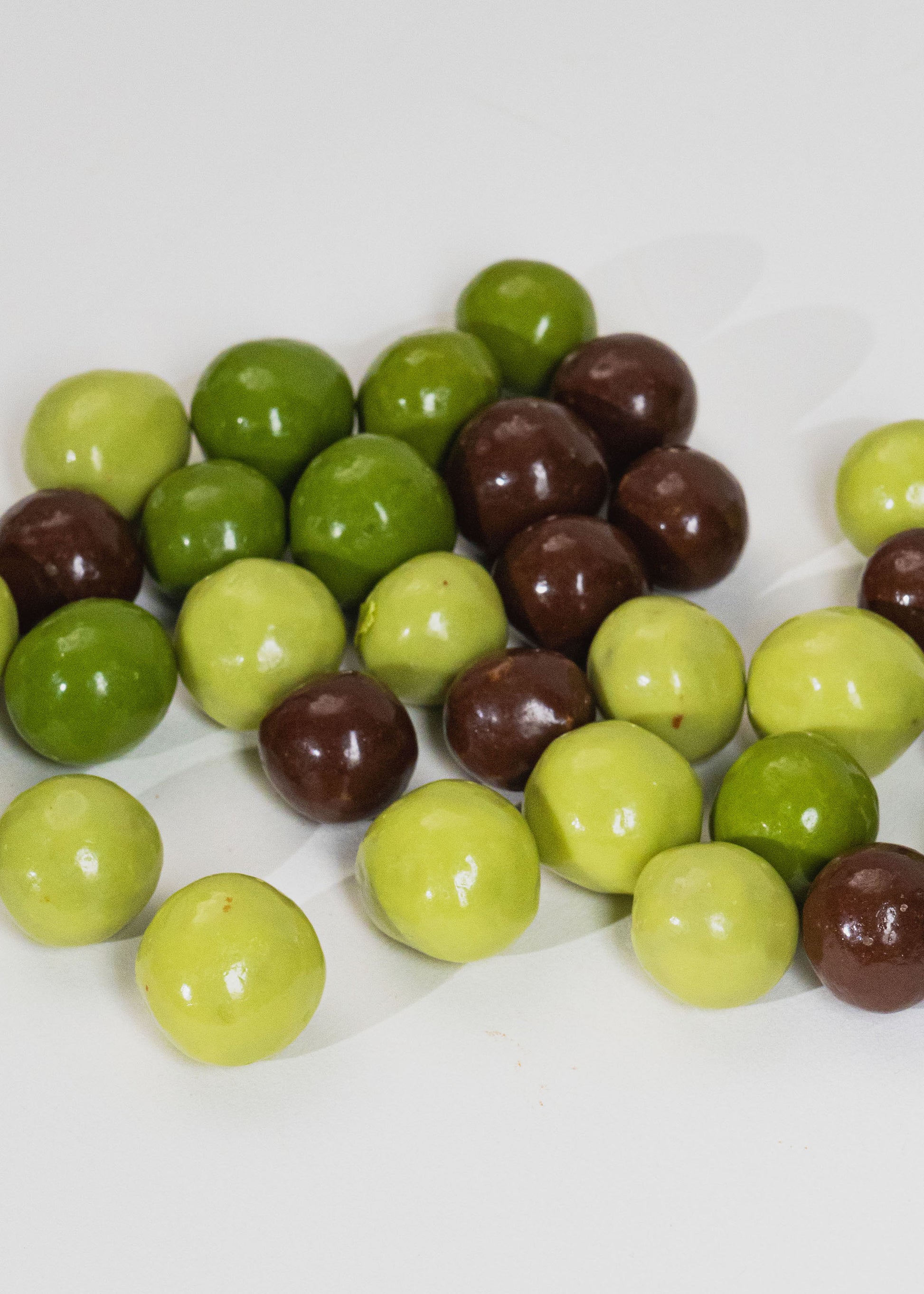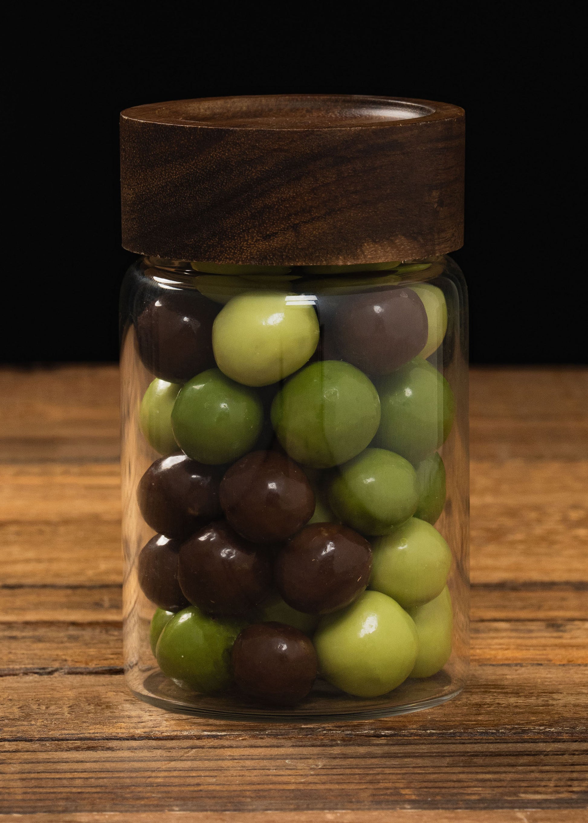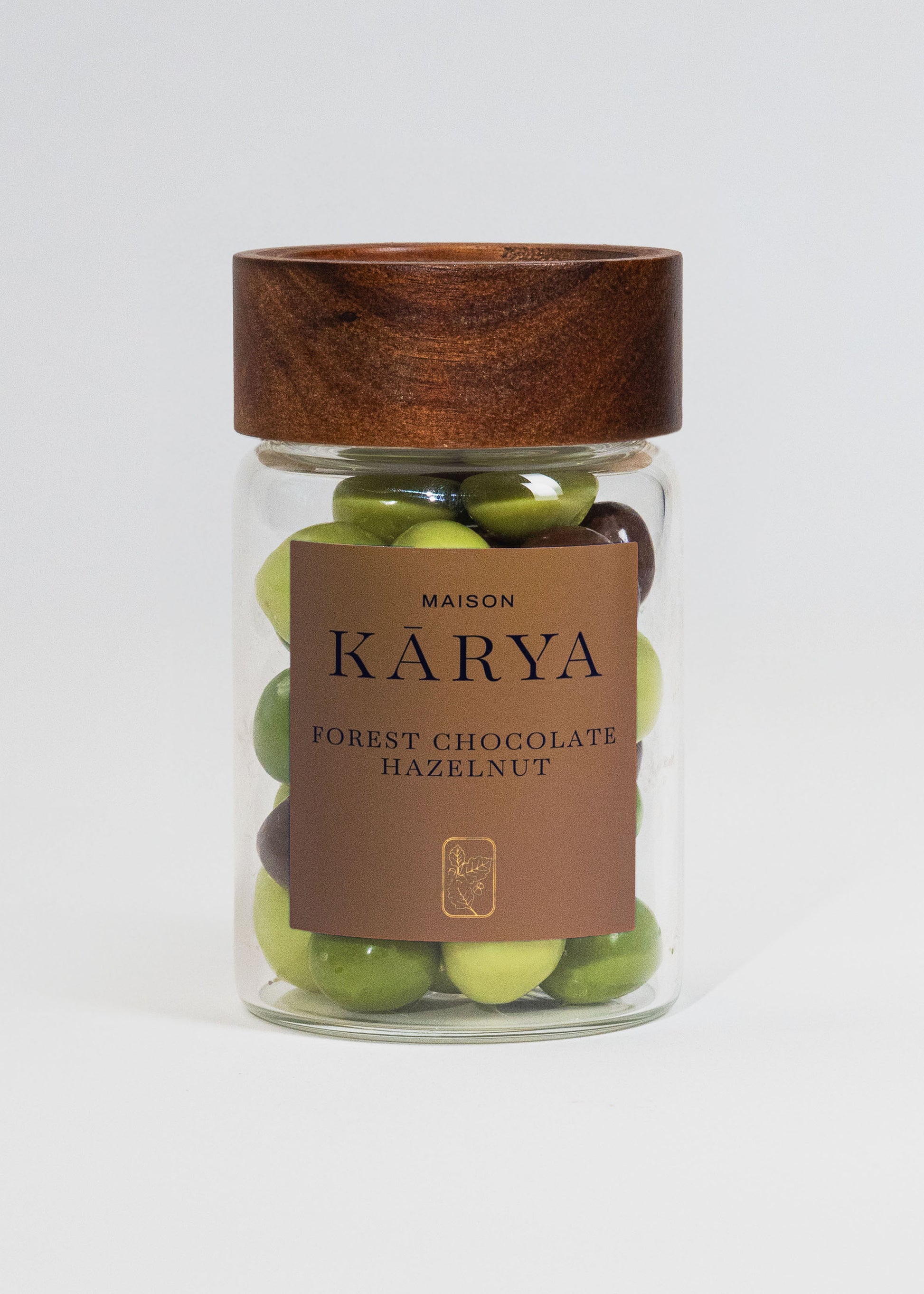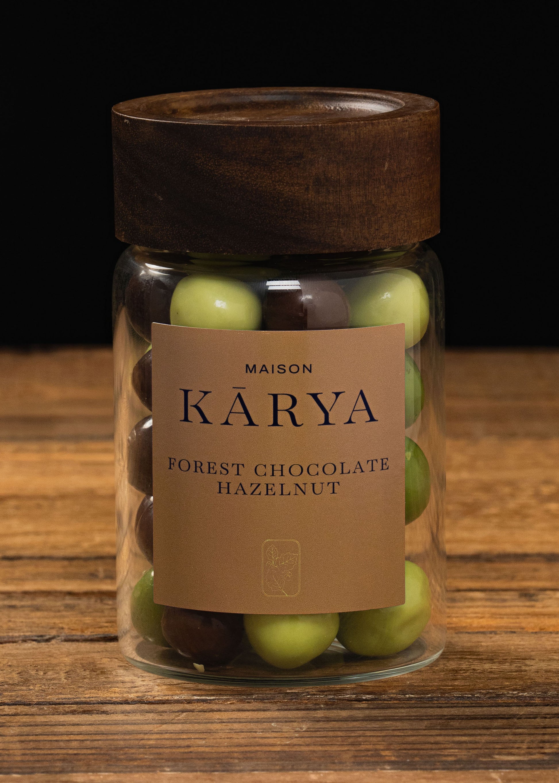 一款精緻的巧克力甜點,內含一顆完整的榛果,散發出微妙的森林香氣。這顆堅果輕輕地裹上一層磨碎的堅果,然後再裹上淺綠色的牛奶或白巧克力。這款甜點口感柔嫩、香氣濃郁、風味雅緻,頌揚了森林風味的天然豐富性。