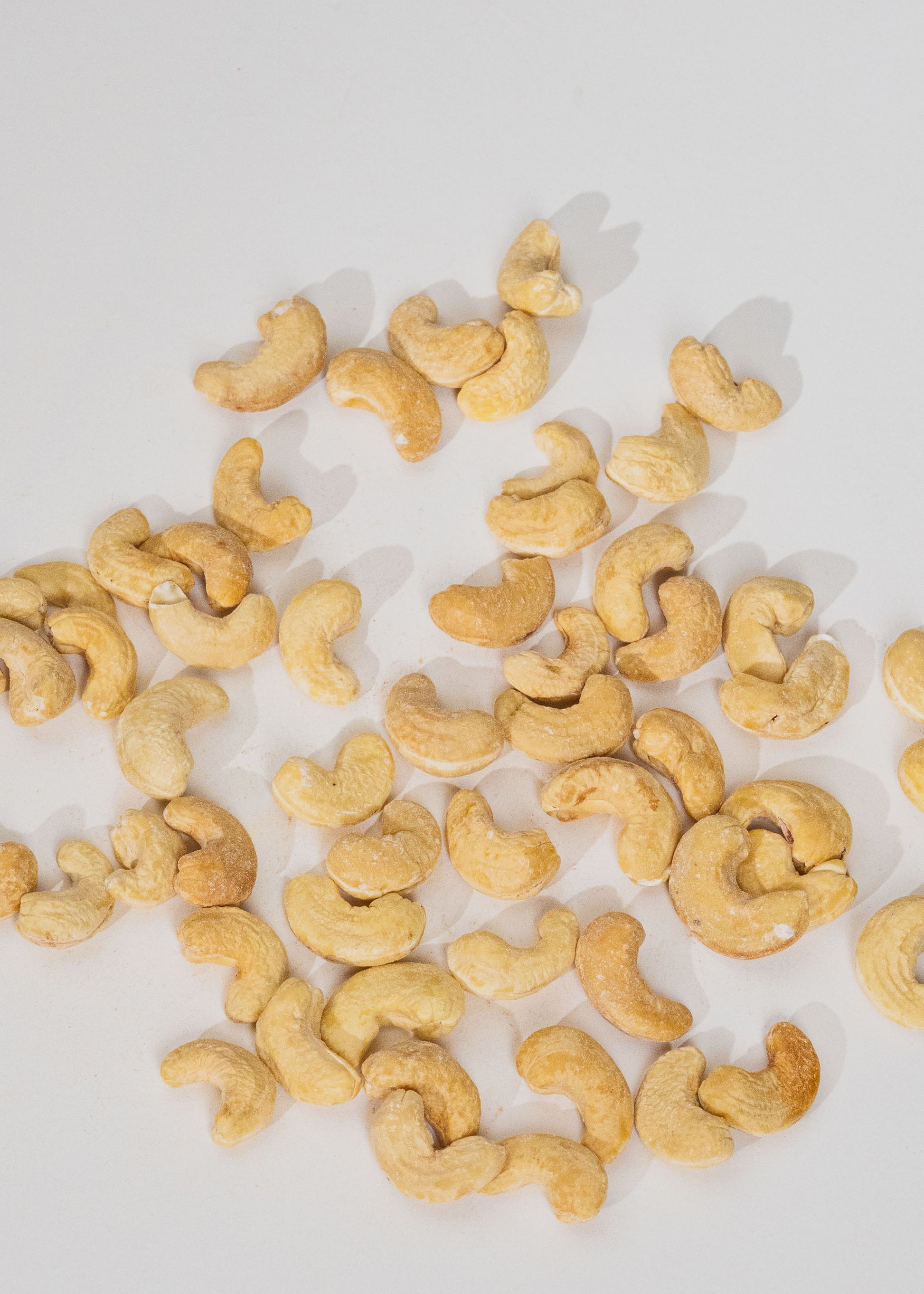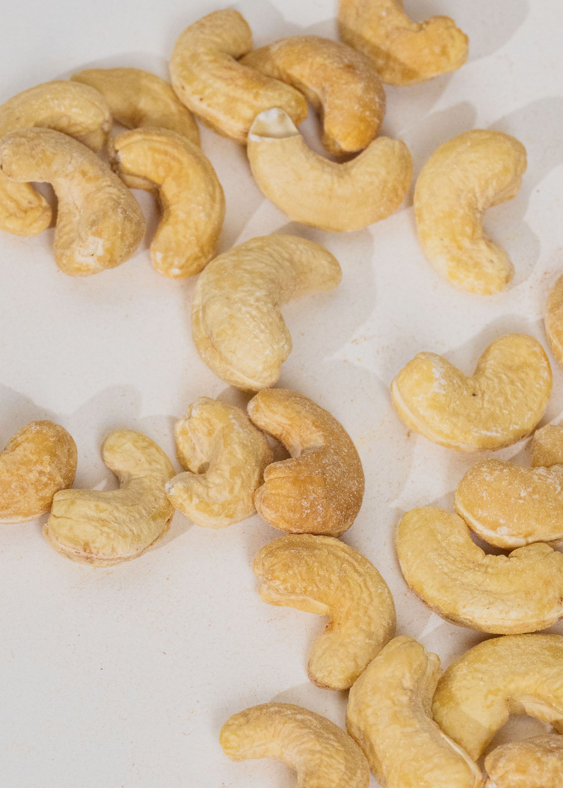 金黃烘烤腰果佐以少許鹽,口感平衡鹹香。腰果富含植物性蛋白質、鎂及必需礦物質,有助於能量生成、肌肉功能及維持日常健康。